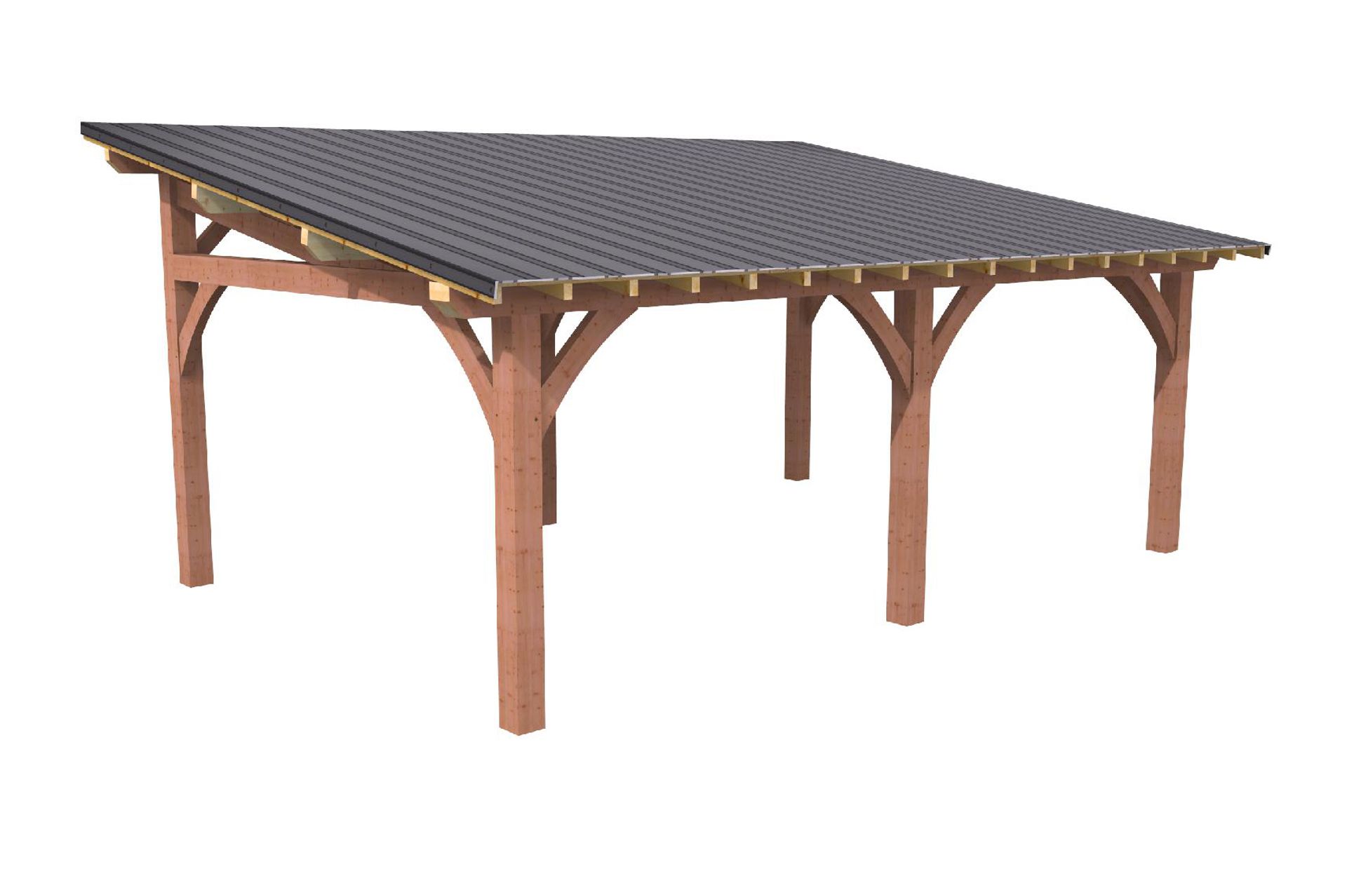 3,60 m x 8,75 m - Pente à 20 ° - Chêne - Lien cintrés - Poteaux 168 x 168 mm